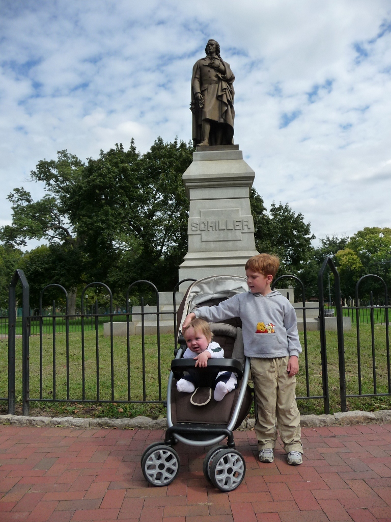 Schiller Park is in the German Village area of Columbus. German Village is really neat area with old but beautifully restored big houses and most of them have very nice landscaping. The area is actually listed on the National Register of Historical places. Schiller Park is a great, peaceful place with a paved walking trail, huge trees, a pond, a garden area, an outdoor stage and a playground.